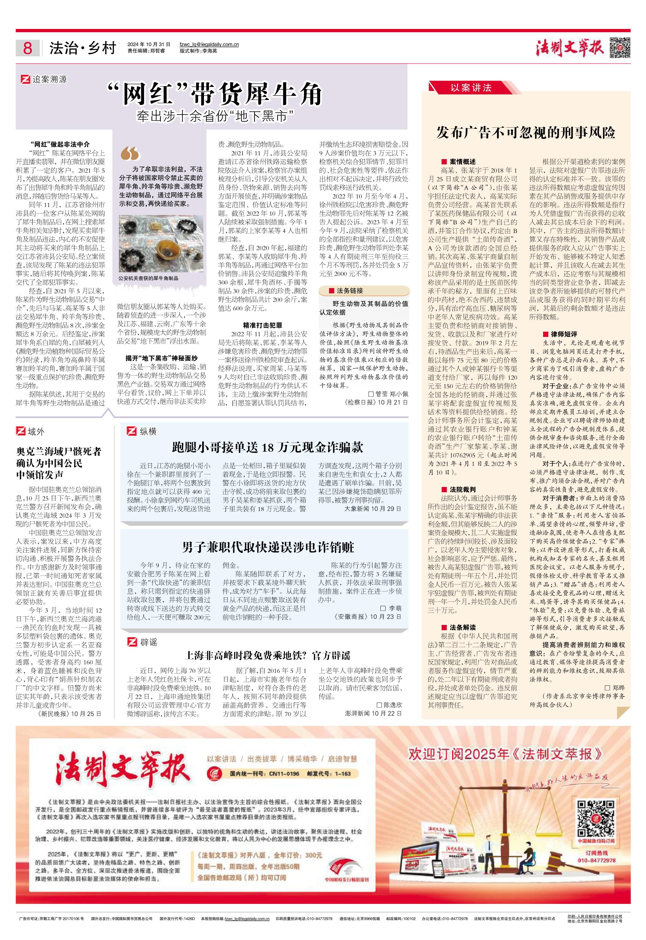 2024年10月31日《法制文萃報》總第2828期8版