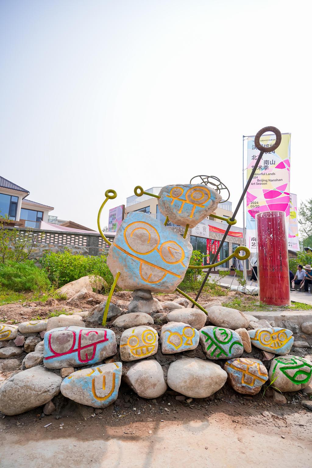 如今,南山村村口灰撲撲的石頭圍墻變成了一面豐收墻,大家把石頭涂畫成白菜、柿子、大桃等果蔬的樣子;清華美院在胡同安裝了交互感應(yīng)裝置,夜晚有人走過,就會投射出一只奔跑的夜光兔子;北京林業(yè)大學(xué)用玻璃飲料瓶復(fù)現(xiàn)了村里曾經(jīng)出土的文物石馬,名為《馬放南山》……環(huán)境變好了,加上南山藝術(shù)季的帶動效應(yīng),村民的柿子、山里紅、核桃也都賣出去了,鄉(xiāng)村建設(shè)還讓村里的石匠、瓦工有了在家門口掙錢的機(jī)會。