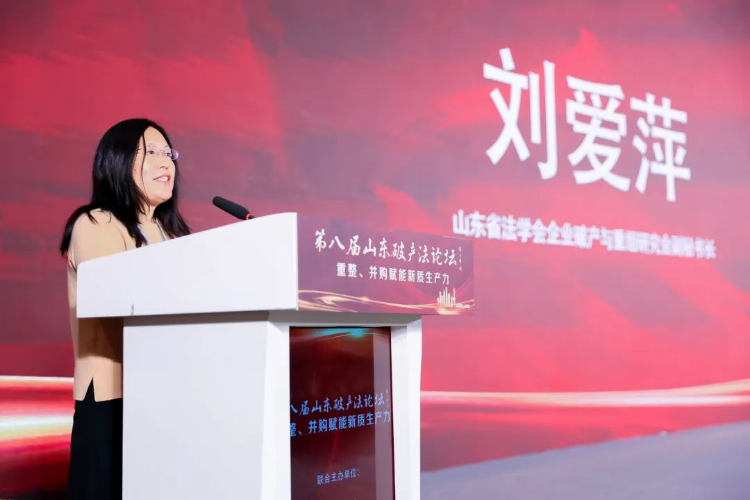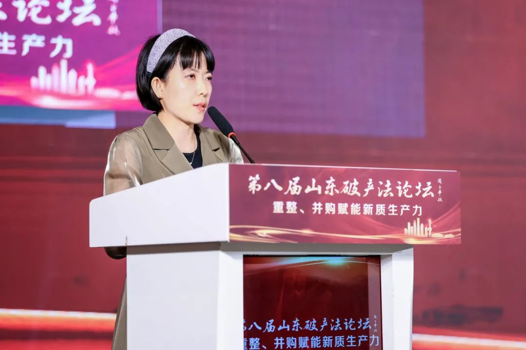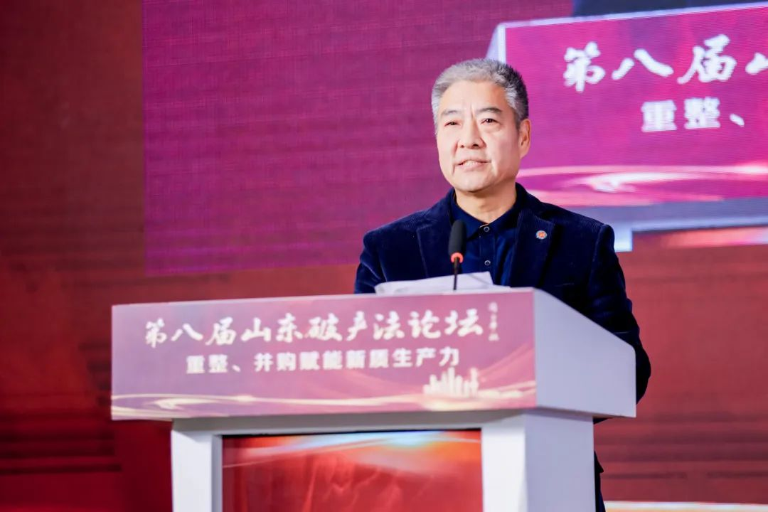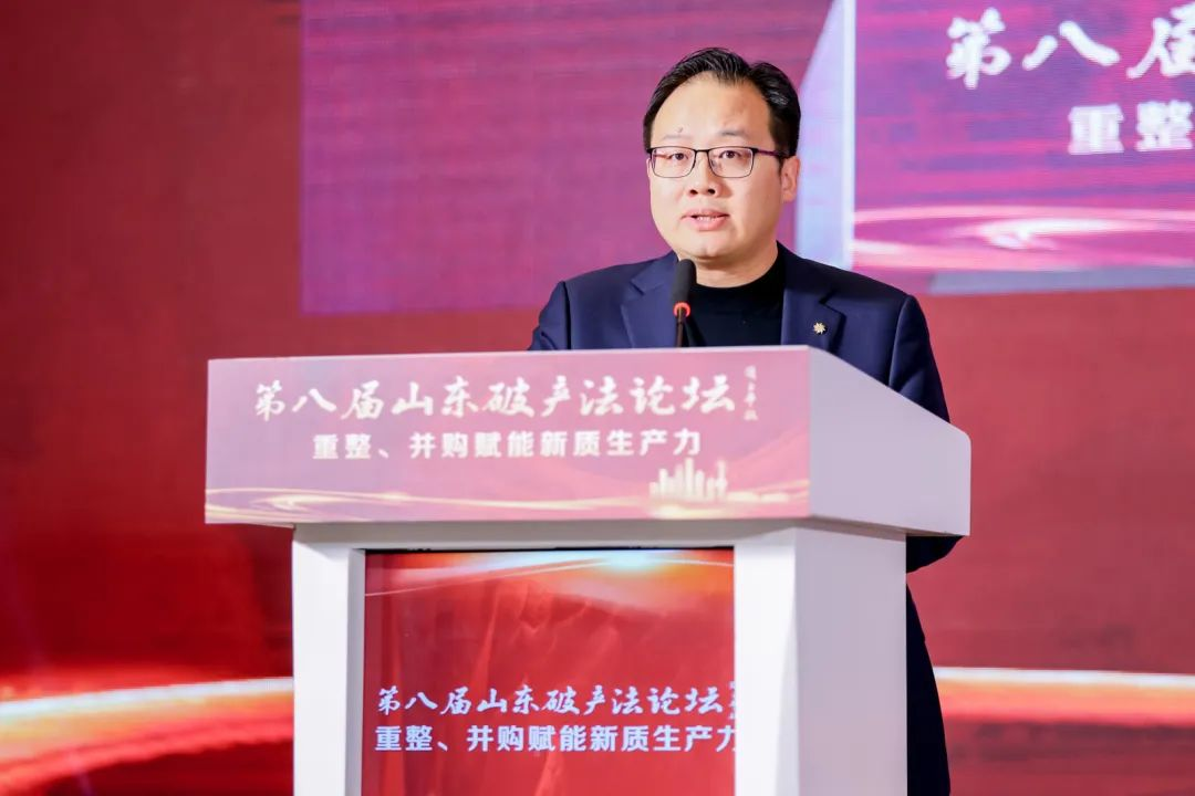 2024年11月10日,第八屆山東破產(chǎn)法論壇在濟南成功舉辦。本屆論壇由全聯(lián)并購公會、山東金融業(yè)聯(lián)合會、山東省不良資產(chǎn)處置協(xié)會、山東大學交叉法學研究院、浙江工商大學破產(chǎn)重組研究院、山東省法學會企業(yè)破產(chǎn)與重組研究會聯(lián)合主辦。本屆論壇緊緊圍繞“新質(zhì)生產(chǎn)力”的深刻內(nèi)涵,聚焦“重整并購賦能新質(zhì)生產(chǎn)力”這一核心主題展開研討。山東法學會企業(yè)破產(chǎn)與重組研究會名譽會長、山東省高級人民法院原院長周玉華;全國工商聯(lián)第十三屆常委、全聯(lián)并購公會會長尉立東;山東金融業(yè)聯(lián)合會秘書長何修崟;山東省不良資產(chǎn)處置協(xié)會會長李薇華;中國法學會世界貿(mào)易組織法研究會副會長兼秘書長、中國人民大學特聘教授石靜霞;華東政法大學國際金融法律學院教授、浙江省高級人民法院原民二庭庭長章恒筑出席開幕式。山東省法學會企業(yè)破產(chǎn)與重組研究會會長劉平主持開幕式。全國工商聯(lián)第十三屆常委、全聯(lián)并購公會會長尉立東,山東省不良資產(chǎn)處置協(xié)會會長李薇華在開幕式上致辭演講。6位主旨演講嘉賓、28位主題演講嘉賓圍繞各主題、議題,展開了為期一天的深入研討。全聯(lián)并購公會副會長、山東省法學會企業(yè)破產(chǎn)與重組研究會副會長兼秘書長、山東華信清算重組集團有限公司董事長提瑞婷作閉幕致辭。