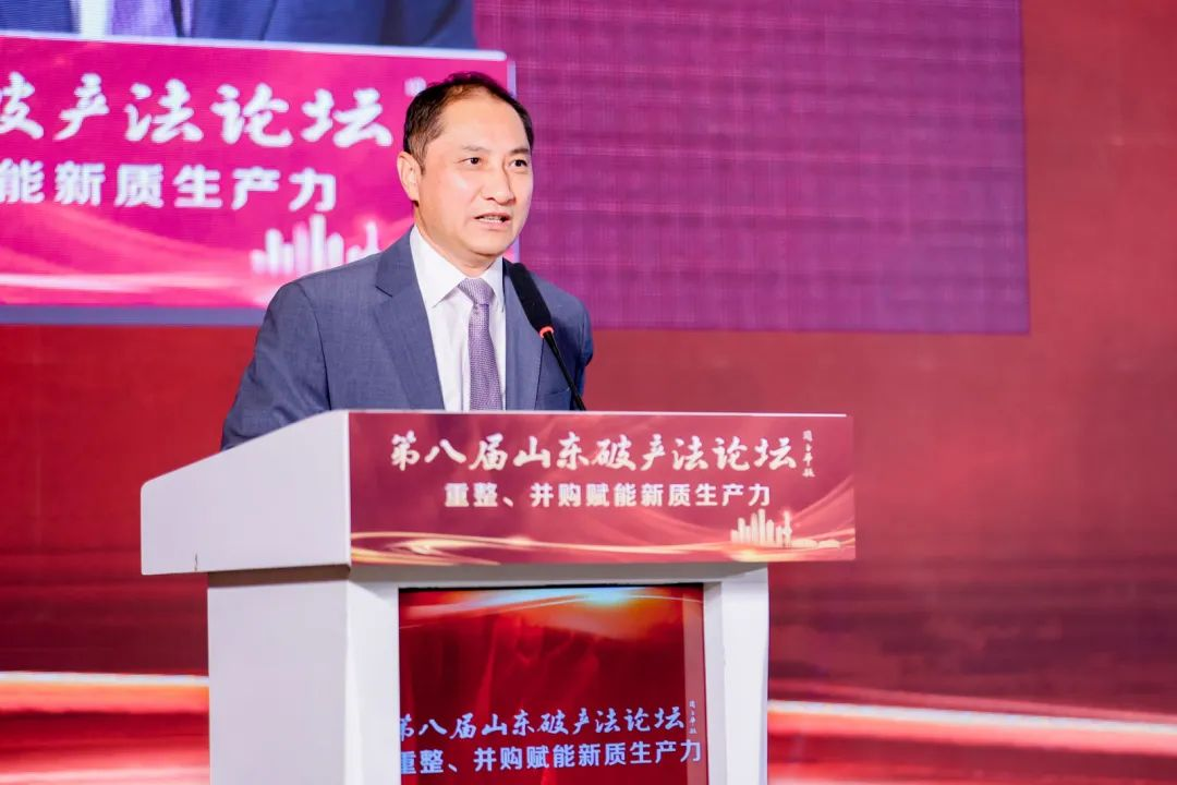 山東省不良資產(chǎn)處置協(xié)會李薇華會長在開幕致辭中對論壇的舉辦致以熱烈的祝賀。李薇華會長表示,黨的二十屆三中全會公報指出,高水平社會主義市場經(jīng)濟體制是中國式現(xiàn)代化的重要保障,要健全因地制宜發(fā)展新質(zhì)生產(chǎn)力的體制機制,發(fā)揮新質(zhì)生產(chǎn)力促進技術(shù)革命性突破、生產(chǎn)要素創(chuàng)新配置以及產(chǎn)業(yè)深度的轉(zhuǎn)型升級的重要作用。除發(fā)現(xiàn)新質(zhì)生產(chǎn)力發(fā)展中的獨特價值之外,我們還應對破產(chǎn)法在司法權(quán)運行機制、金融機構(gòu)風險處置、國企并購擔當?shù)确矫孢M行前沿探索與深入實踐。破產(chǎn)法的實施,離不開社會各界的交流與合作、共同努力,法院、協(xié)會、企業(yè)、院校、投融資機構(gòu)及從業(yè)者要共同攜手、形成合力,推動破產(chǎn)法制度的完善與實施。