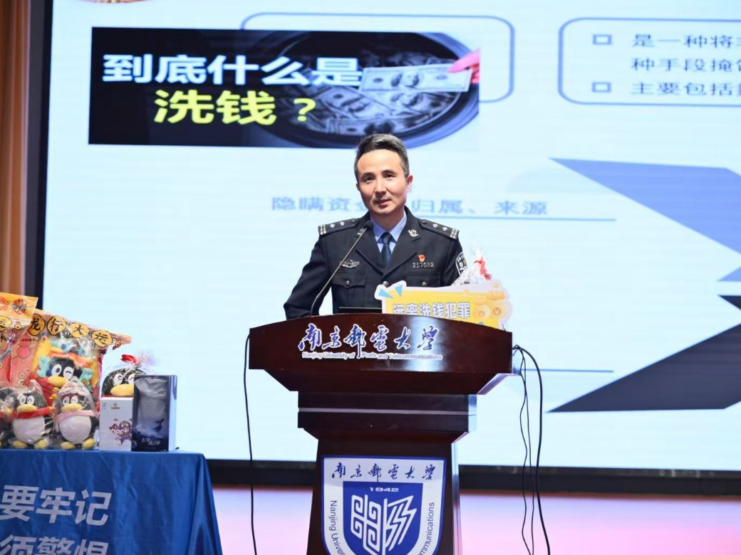 在主題宣講中,南京市公安局經(jīng)偵支隊第一偵查大隊教導員張熙以典型案例為切入點,向同學們詳細、生動地講解了洗錢的基本概念、不同形式的犯罪手段以及反洗錢的重要意義。洗錢犯罪活動不僅嚴重破壞金融秩序,還可能導致個人信息泄露、財產(chǎn)受損,要時刻保持警惕。