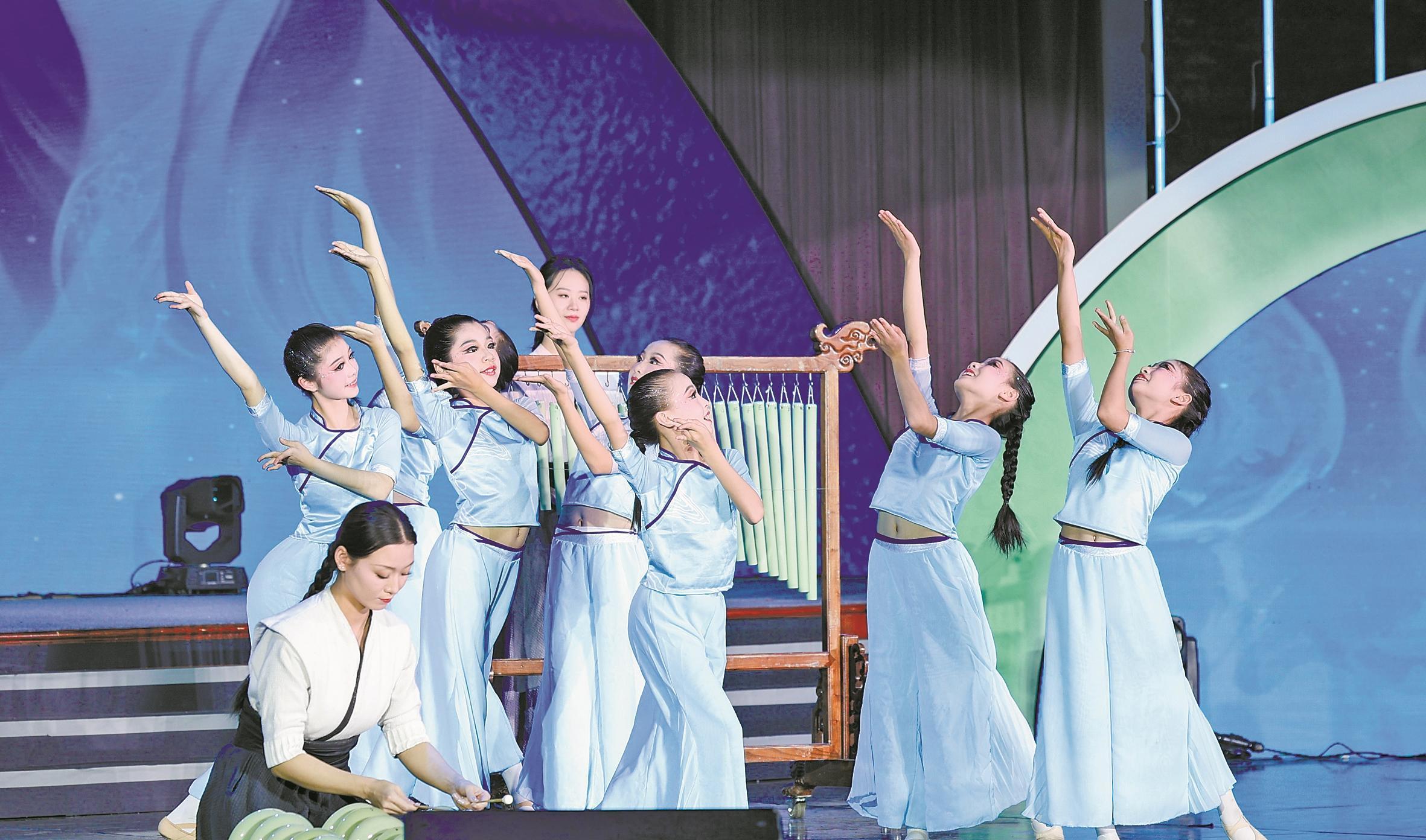 情景舞蹈《來來,村舞跳起來》中,來自海曙區(qū)龍觀鄉(xiāng)和石碶街道的廣場舞愛好者與街舞青年跨代合作,男女老少齊上陣?!拔覀儾环?、不服輸。”66歲的陳英琴說,空閑時她就喜歡和村民一起跳廣場舞,演出已經(jīng)是“家常菜”;
