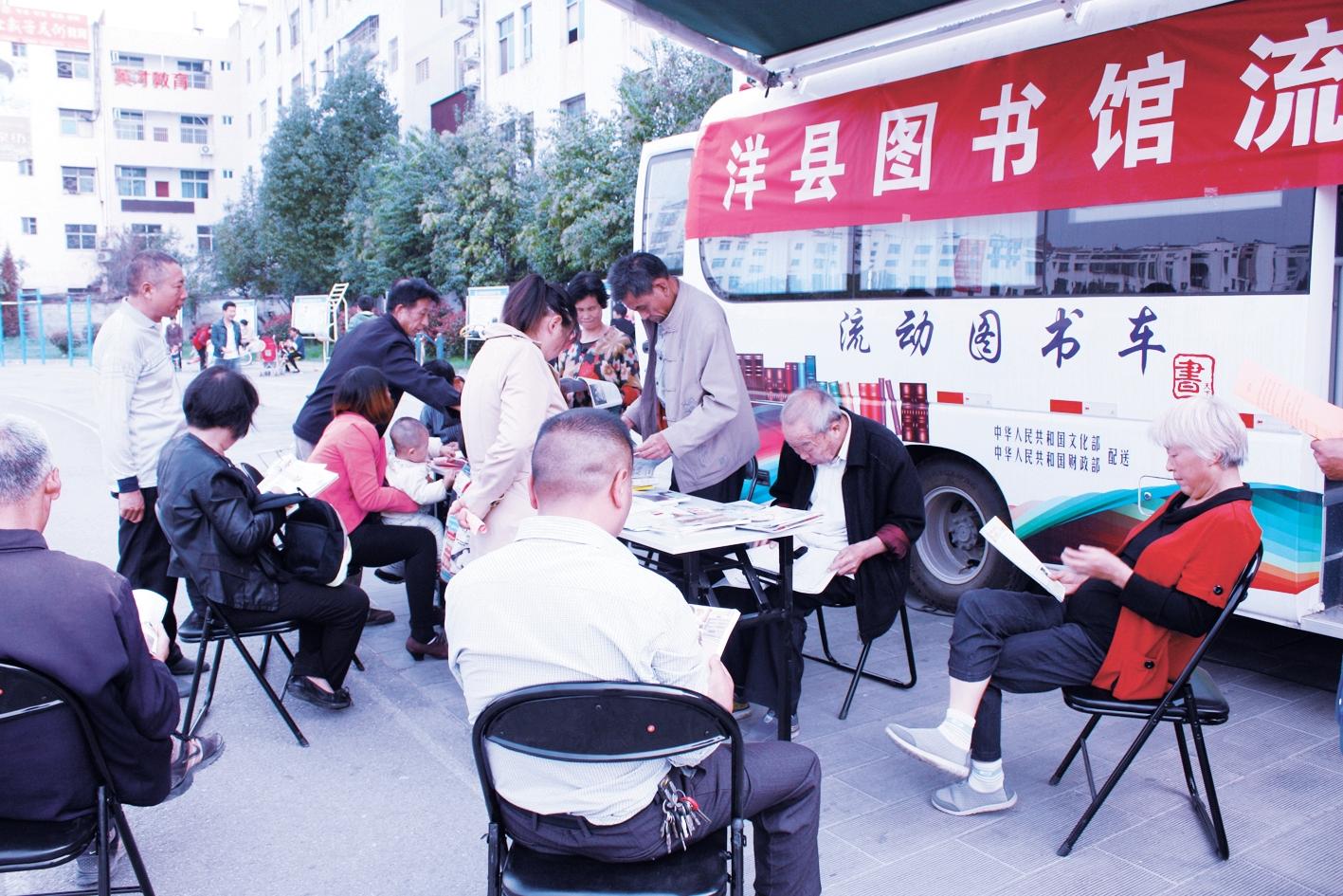 洋縣流動(dòng)圖書車走進(jìn)社區(qū)(洋縣文化和旅游局供圖)