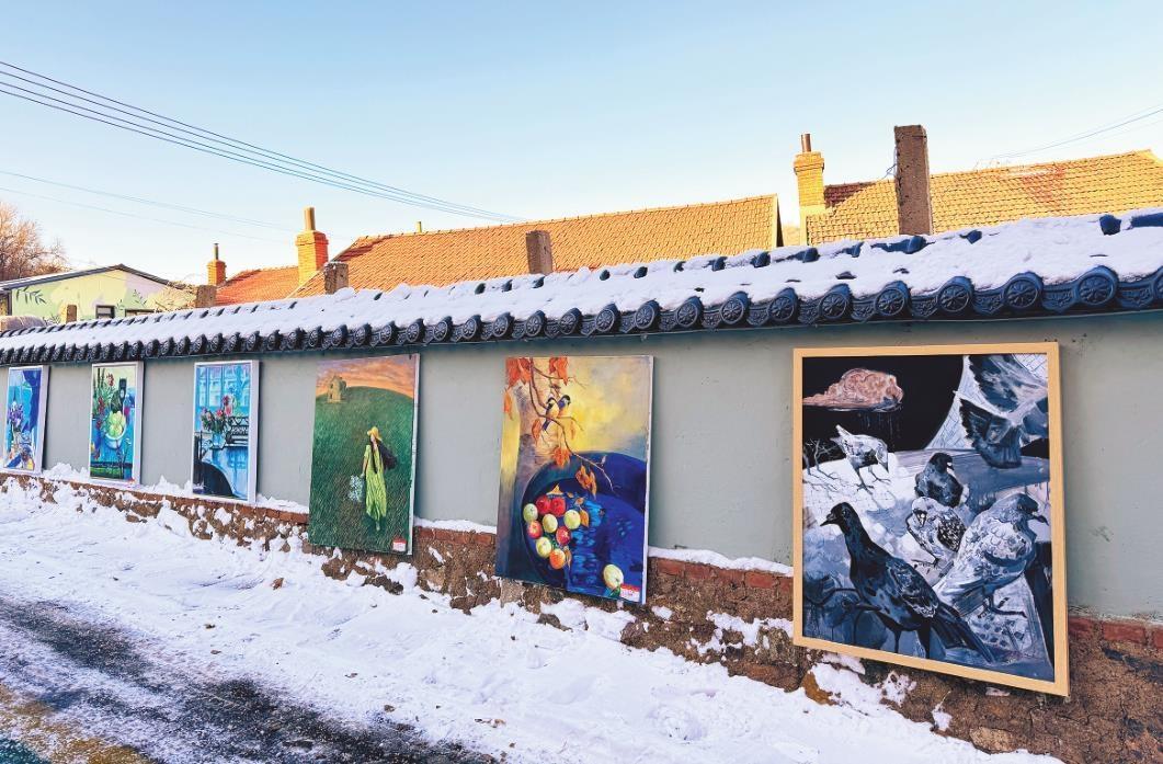 早春時(shí)節(jié),記者走進(jìn)色彩斑斕的齊家溝。此時(shí),地上的雪還沒完全融化。院墻上的色彩,大多出自畫家叢丹和高原麗夫婦之手。2000年,夫妻二人來到齊家溝落成了“山居畫室”,從此便告別都市生活,常居在這個(gè)寧?kù)o、充滿野趣的小村落靜心創(chuàng)作。此后,省內(nèi)外陸續(xù)有十余名知名畫家來此居住,漸漸地,齊家溝成了遠(yuǎn)近聞名的“畫家村”。