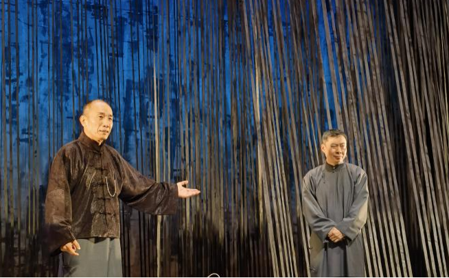 2025年3月末,由方旭、郭笑主演的話(huà)劇《老李對(duì)愛(ài)的幻想》在北京老舍劇場(chǎng)成功展演。該劇改編自老舍同名長(zhǎng)篇小說(shuō)《離婚》,講述主人公小“智識(shí)”分子老李掙扎于詩(shī)意幻想和庸俗實(shí)際,在傳統(tǒng)和變革進(jìn)退兩難的苦悶中,經(jīng)由一起“政治”暗殺促成自我蛻變的無(wú)奈故事。劇中著力表現(xiàn)民國(guó)離婚鬧劇風(fēng)潮下,小市民的情感困境及文化心態(tài),正如老李的舞臺(tái)形象:一身灰色長(zhǎng)衫,圍著藍(lán)色圍巾——灰藍(lán)色在老舍筆下是“最不得人心的”,因?yàn)椤耙挥錾详?yáng)光管保只剩下灰,一點(diǎn)也不藍(lán)”。