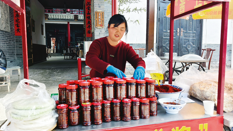 “現(xiàn)在真是大變樣!”鄭翠擦著餐桌感慨道,“我一個普通農民,本是給孩子做的辣醬,竟然得到這么多人的認可,這讓我非常開心。”2023年,村上免費組織村民學習抖音短視頻拍攝,岳綿綿親自幫助她。鏡頭里既有辣子鍋盔的制作過程,也有青訓班舊址的紅色故事。如今這家不足200平方米的農家樂,自從“觸網”后,本著薄利多銷的原則,依靠品質和服務,游客翻了一番,自制辣醬年銷售額常常供不應求。