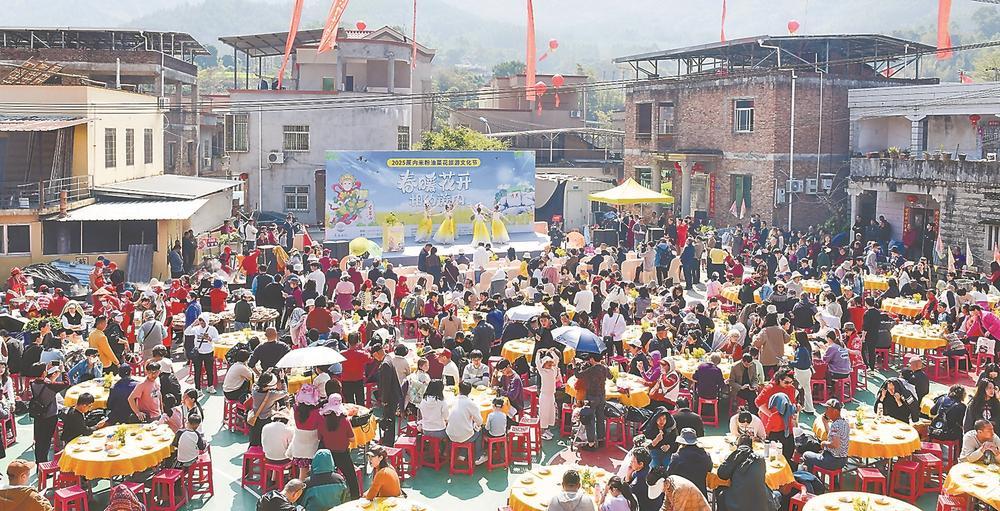 2月15日,蓮花鎮(zhèn)蔗內(nèi)村舉辦2025蔗內(nèi)米粉油菜花旅游文化節(jié),千余名游客熱情參與。