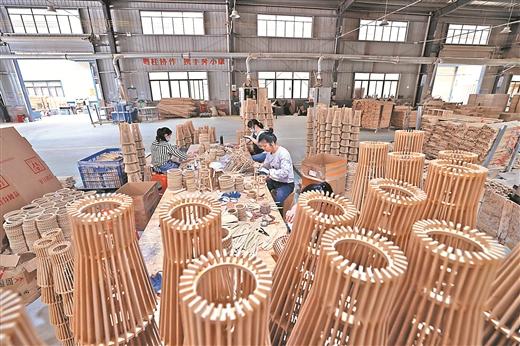 融安竹木等資源十分豐富,如何讓優(yōu)勢資源更優(yōu)?融嘉公司利用當?shù)刂褡?、白芒草、杉木皮等原材料,加工成竹籬笆、原生態(tài)圍欄、燈罩、置物架等工藝產(chǎn)品。產(chǎn)品由天然環(huán)保材質(zhì)生產(chǎn),且設(shè)計獨特,深受國內(nèi)外市場青睞,產(chǎn)品遠銷海外30多個國家和地區(qū)。