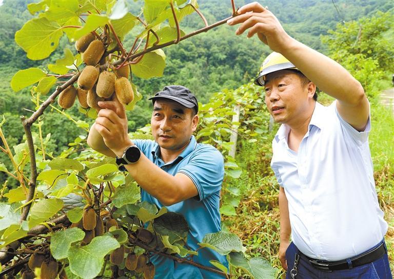 嵐皋縣高級農(nóng)藝師謝利華(左)在指導(dǎo)村民進(jìn)行獼猴桃管護(hù)(資料照片)。受訪者供圖