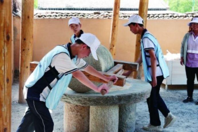 神玉村的名氣越來越響,許多研學(xué)團也紛至沓來。記者到訪時,180多名黃龍縣初級中學(xué)初二的學(xué)生正在神玉村開展研學(xué)活動,他們動手磨豆?jié){、包餛飩、生火做飯,感悟“一粥一飯,當思來之不易”的道理。