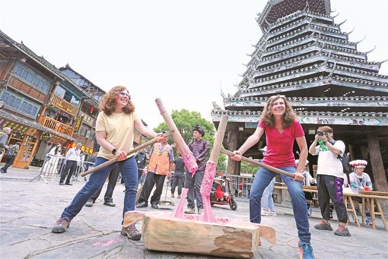 外國朋友體驗(yàn)打糍粑。吳光輝 攝