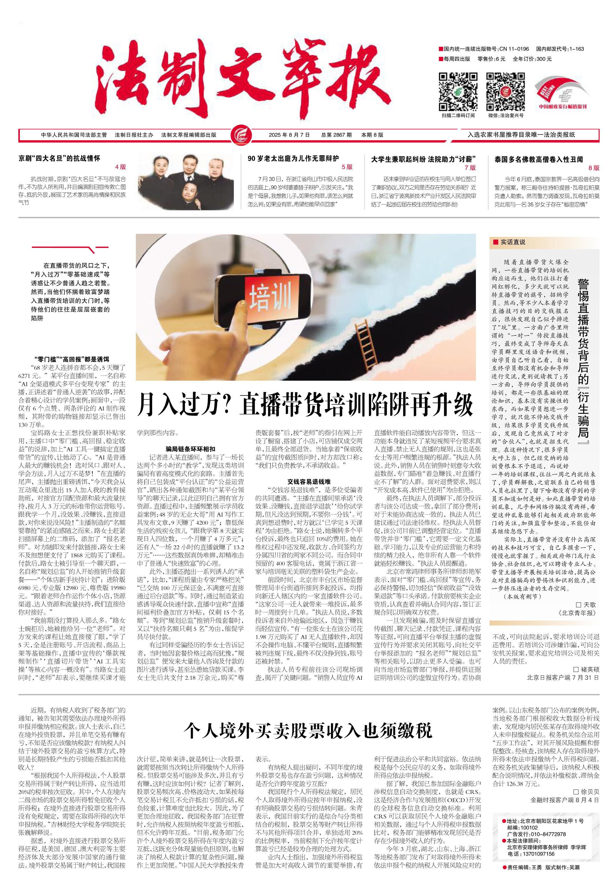 2025年8月7日《法制文萃報(bào)》總第2867期1版