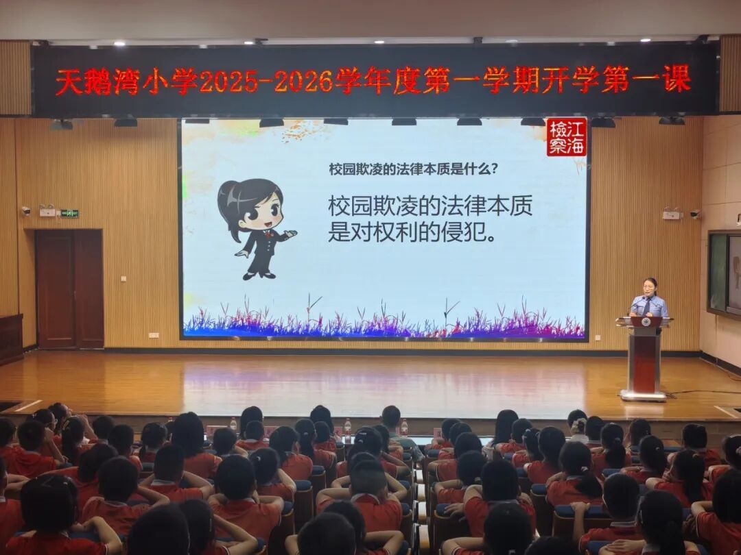9月,新學(xué)期如約而至,廣東省江門市江海區(qū)人民檢察院“藍(lán)色港灣”未成年人檢察工作品牌再次溫暖啟航,持續(xù)發(fā)揮檢察力量,守護(hù)青春成長。法治副校長與青年法治宣講團(tuán)成員相繼走進(jìn)滘頭小學(xué)、天鵝灣小學(xué)、禮樂中心小學(xué)、新聯(lián)小學(xué)、陽光學(xué)校及江門市工貿(mào)職業(yè)技術(shù)學(xué)校,為孩子們量身打造了一堂堂生動而深刻的“開學(xué)第一課”,用專業(yè)的法律知識和司法溫度,為青春之路筑起堅實(shí)的法治屏障。