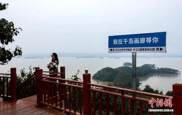 游客在丹江口千島畫廊拍照留念。張暢 攝