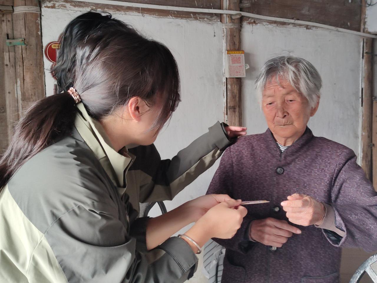 “守望時(shí)光里”海島支老公益項(xiàng)目?jī)擅骼砣硕伎既×损B(yǎng)老護(hù)理員證書,并經(jīng)過(guò)健康體檢業(yè)務(wù)培訓(xùn),他們每月要上門為村里所有老人做一次血糖、血壓等基礎(chǔ)健康檢查。