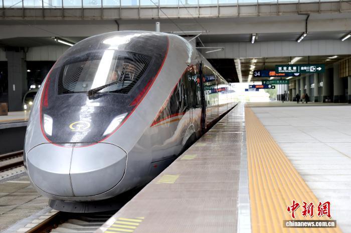 11月17日,西延高鐵進入試運行階段,列車??吭谖靼脖闭菊b待發(fā)。張立麗 攝