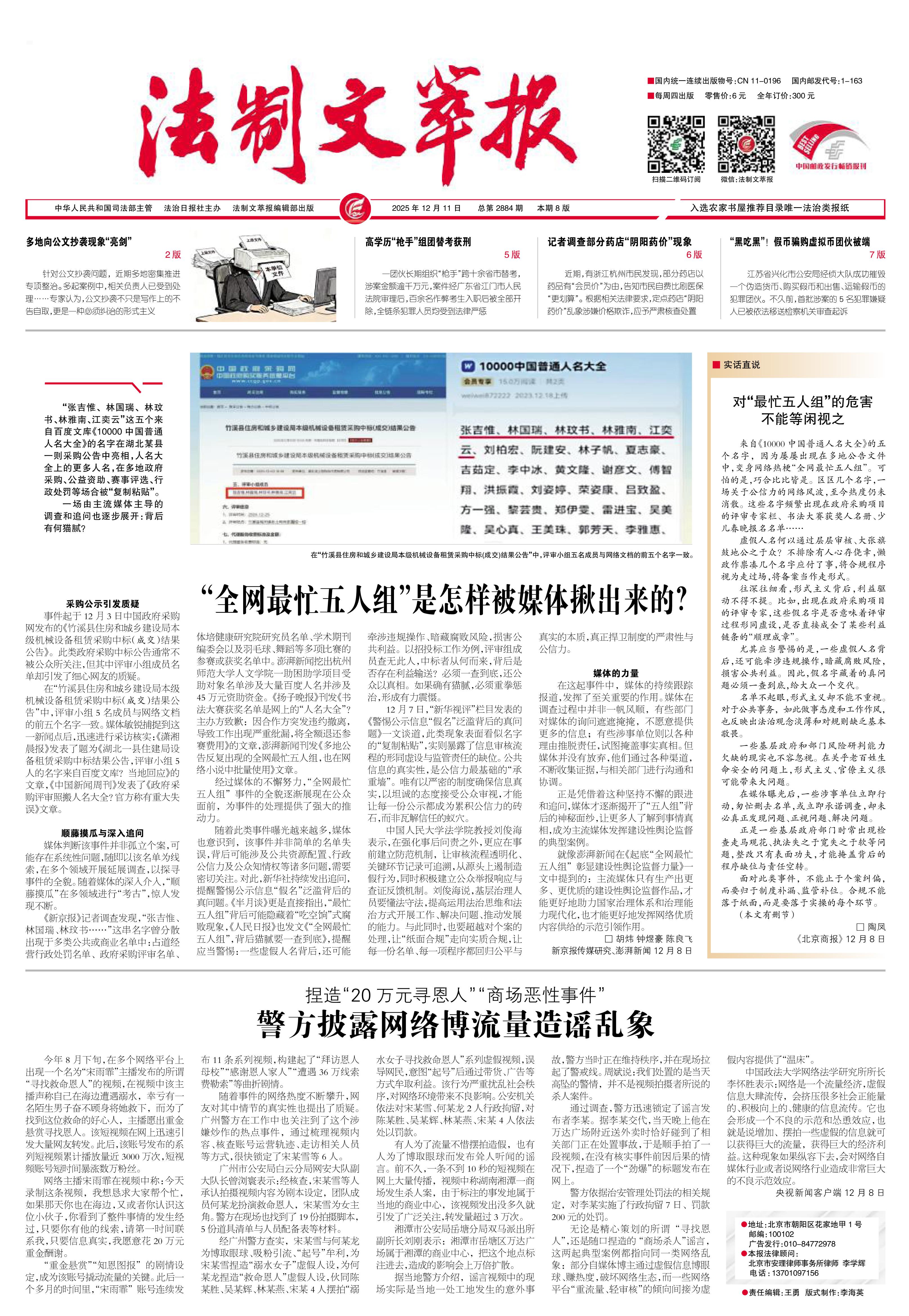 2025年12月11日《法制文萃報》總第2884期1版