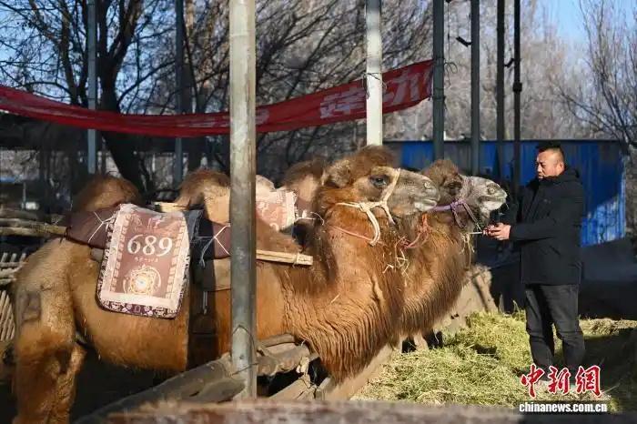 根據(jù)游客到訪情況,冬春季,駱駝們2至3天輪流上班一次。冬季上崗的駱駝并非隨機(jī)挑選,而是各有“任務(wù)”。趙文龍說(shuō),一部分是“調(diào)皮偷懶”的年輕駱駝,遇到體重較重的游客會(huì)故意跪地不起,需要通過(guò)冬季復(fù)訓(xùn)磨練性子;另一部分則是年齡稍大的駱駝,夏季不讓它們承擔(dān)重活,冬季偶爾上崗既能活動(dòng)筋骨,還能發(fā)揮“老帶新”的作用,指導(dǎo)年輕駱駝適應(yīng)工作。