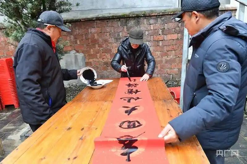 為村民免費書寫春聯(lián)(央廣網(wǎng)發(fā) 黃美茜 攝)