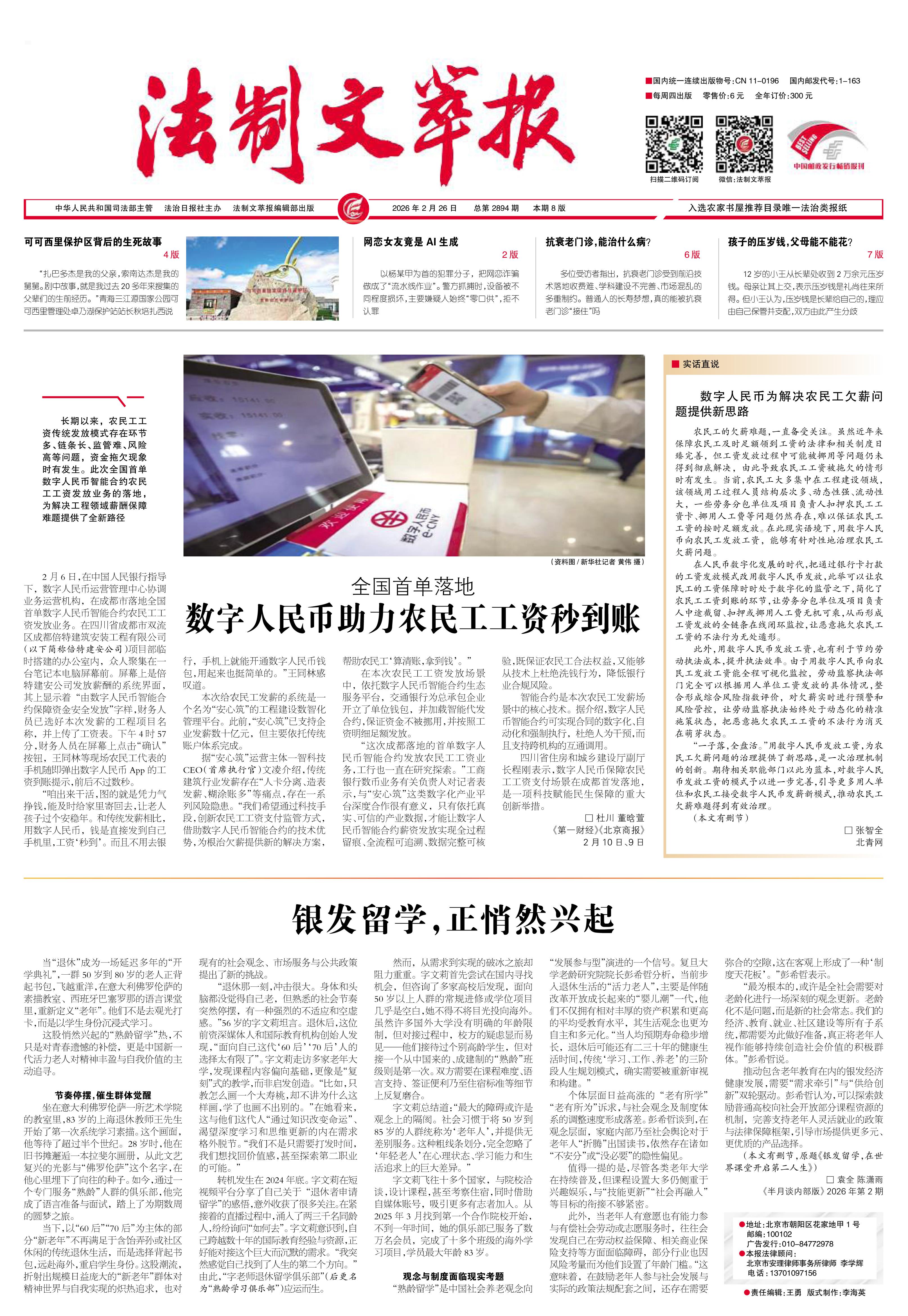 2026年2月26日《法制文萃報》總第2894期1版
