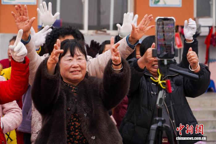 3月7日,林州姚村鎮(zhèn)軍營村積雪未消。一處閑置院落內(nèi),20多位農(nóng)村大媽跟隨音樂節(jié)奏跳起熱情洋溢的舞蹈,同時(shí)回應(yīng)著直播話題。當(dāng)天下午,直播間在線人數(shù)最高峰時(shí)近4500人。