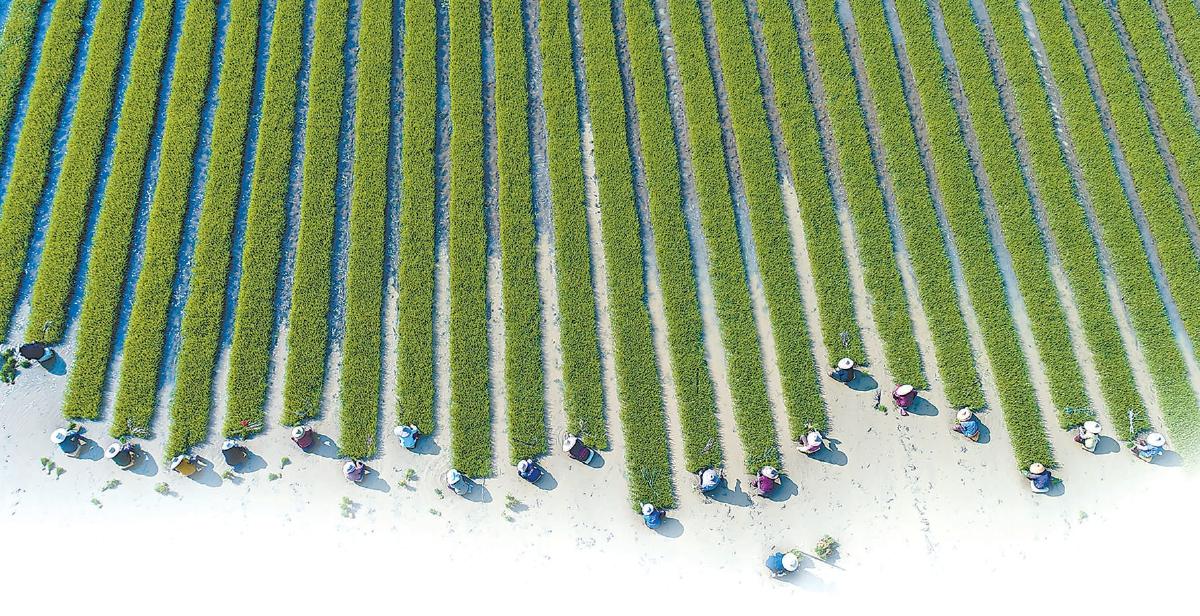 春耕初啟,農(nóng)民在農(nóng)田勞作。圖