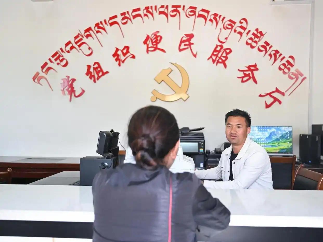 4月13日,在才堂村黨組織便民服務(wù)廳,工作人員正在為村民講解醫(yī)療保障政策。新華社記者 張龍 攝