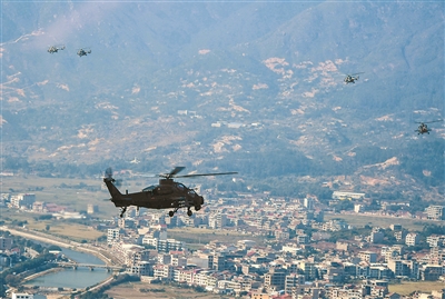 “計(jì)時(shí)起飛?!鄙衔?時(shí),隨著塔臺(tái)指揮員一聲令下,30余架多型號(hào)直升機(jī)從閩南某機(jī)場(chǎng)騰空而起,直奔預(yù)定空域,拉開(kāi)訓(xùn)練帷幕。