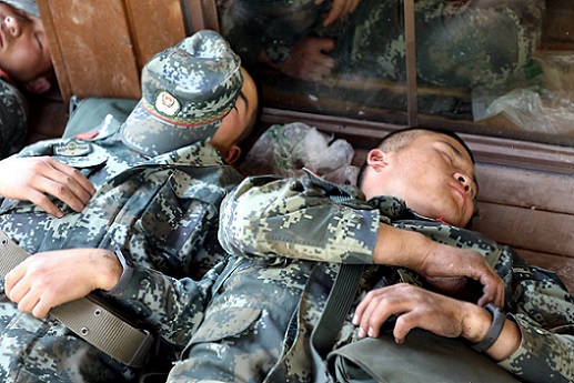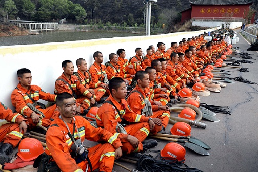 圖為2020年4月1日,武警官兵完成西昌百花深溝煙點(diǎn)撲救任務(wù)就地休息。李結(jié)義 攝
