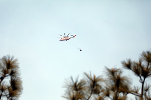 圖為2020年4月1日,直升機(jī)在空中吊水作業(yè)。李結(jié)義 攝