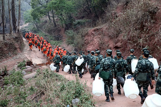 武警涼山支隊(duì)300名官兵徒步上山,攜帶風(fēng)力滅火機(jī)、二號(hào)工具和水袋等滅火裝備前往馬道百花深溝,明火已被撲滅,但仍有100多處煙點(diǎn),極易產(chǎn)生復(fù)燃。為防范局地較強(qiáng)陣風(fēng)對(duì)撲火工作的影響,官兵加強(qiáng)防護(hù)警戒,在確保自身絕對(duì)安全的情況下全面清理煙點(diǎn)。截止4月1日下午3點(diǎn),共清理火場(chǎng)860余畝,處理煙點(diǎn)和零星火點(diǎn)110余個(gè),排查和清理工作仍在進(jìn)行中。