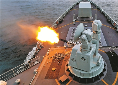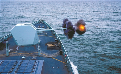 圖為主炮對海面目標(biāo)實施火力打擊。