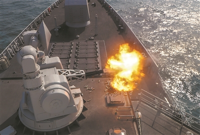 航行途中,編隊(duì)各艦雷達(dá)相繼發(fā)現(xiàn)空中可疑目標(biāo),官兵立即進(jìn)入戰(zhàn)斗狀態(tài)。成都艦作戰(zhàn)室內(nèi),鍵盤聲、口令聲此起彼伏。“開火!”判明并鎖定目標(biāo)后,艦長(zhǎng)果斷下達(dá)攻擊命令。