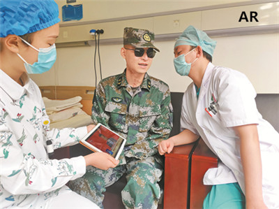 上圖:陸軍軍醫(yī)大學第一附屬醫(yī)院醫(yī)護人員與杜富國一起收聽兩會新聞。馬璽君 攝