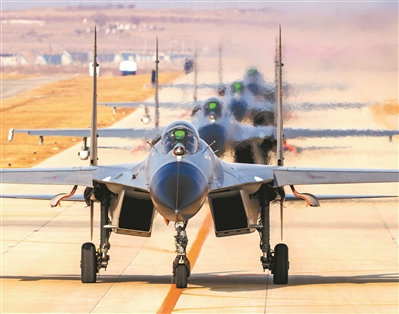 北部戰(zhàn)區(qū)空軍航空兵某旅組織跨晝夜飛行訓(xùn)練。 楊盼 攝