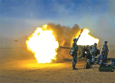 圖⑤:炮兵分隊開展火力打擊演練。