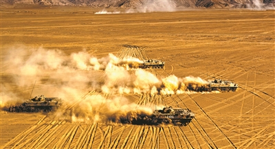 圖①:鐵甲戰(zhàn)車向“敵”陣地發(fā)起進攻。