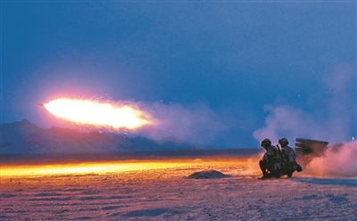 圖④:火箭炮分隊夜間實彈射擊訓(xùn)練。