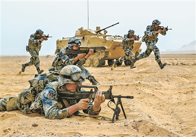 6月1日,空降兵某旅組織的一場實戰(zhàn)背景下空降機步營戰(zhàn)術(shù)演練,在西北大漠腹地激烈進行。面對復(fù)雜“敵情”,營指揮員沉著研判態(tài)勢,果斷調(diào)整兵力部署,指揮部隊采取靈活戰(zhàn)術(shù),向“敵”陣地發(fā)起突擊。