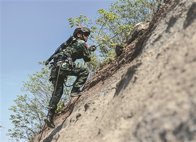 特戰(zhàn)隊員翻越斷崖,迂回圍剿“暴恐分子”。
