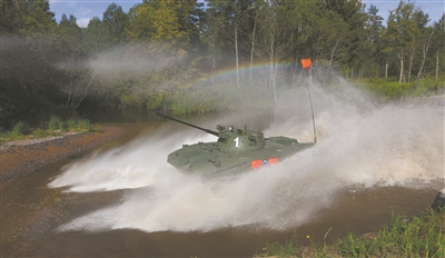 8月25日,“空降排”項目第二階段戰(zhàn)車單車賽展開激烈角逐,首次使用俄方戰(zhàn)車的我軍參賽隊快速通過淺灘障礙。