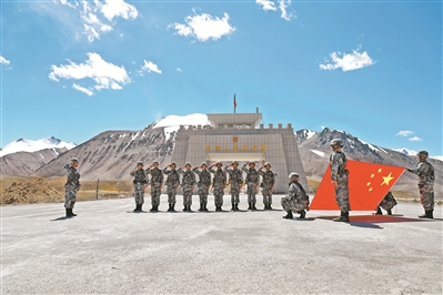 近日,新疆喀什軍分區(qū)紅其拉甫邊防連組織即將退役的士兵進行告別國門儀式。圖為守邊戰(zhàn)士面向國旗莊嚴宣誓,他們紛紛表示,到地方后會續(xù)寫軍人新風采。李小龍攝