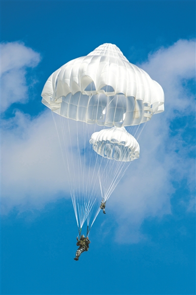 圖③:全副武裝傘降。