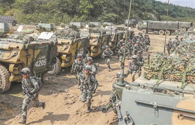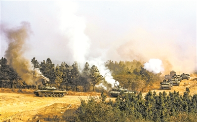 紅方偵察分隊(duì)抵近藍(lán)方前沿陣地,迅速傳回“敵情”。指揮所果斷下令,指揮炮兵分隊(duì)、電子對(duì)抗分隊(duì)、陸航火力和步兵突擊車攻擊群打出一套“組合拳”,對(duì)藍(lán)方陣地實(shí)施猛烈攻擊?;鹆Υ驌暨^后,藍(lán)方殘余力量依托有利地形負(fù)隅頑抗。抓住時(shí)機(jī),紅方前沿突擊隊(duì)順勢(shì)展開強(qiáng)攻,在藍(lán)方火力封鎖區(qū)“撕”開一個(gè)突破口,成功占領(lǐng)陣地。