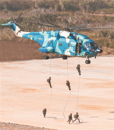 隨著塔臺下達指令,由10多架偵察、武裝等多種機型組成的直升機編隊依次升空。與此同時,地面突擊分隊也搭乘多架運輸直升機,向預定作戰(zhàn)地域隱蔽機動。