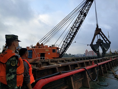 圖為嫌疑人現(xiàn)場(chǎng)指認(rèn)非法傾廢船舶。中國(guó)海警局供圖