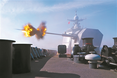 “射擊!”編隊指揮員一聲令下,各艦主炮相繼對來襲“敵”目標實施火力打擊。一時間,海面炮聲隆隆,硝煙彌漫。