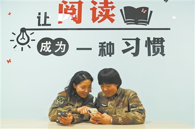 圖③:通過智能手機,官兵能從網(wǎng)上閱讀更多書籍。