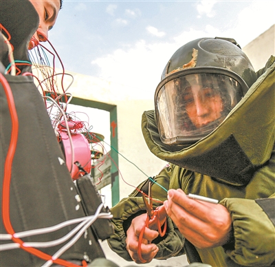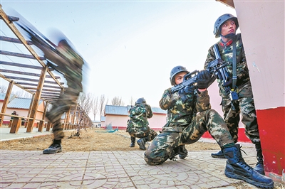 演訓(xùn)場上,其他演練課目接連展開,砥礪官兵實(shí)戰(zhàn)能力。某大隊(duì)?wèi)?yīng)用激光模擬對(duì)抗系統(tǒng),組織紅藍(lán)對(duì)抗;排爆分隊(duì)設(shè)置復(fù)雜現(xiàn)場環(huán)境,排除“人質(zhì)”身上捆綁的“爆炸物”;偵察分隊(duì)實(shí)施抵近偵察,開展突入房屋訓(xùn)練……