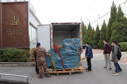 圖為組織重大職務(wù)犯罪涉案贓物搬運拍賣。黃琛 攝